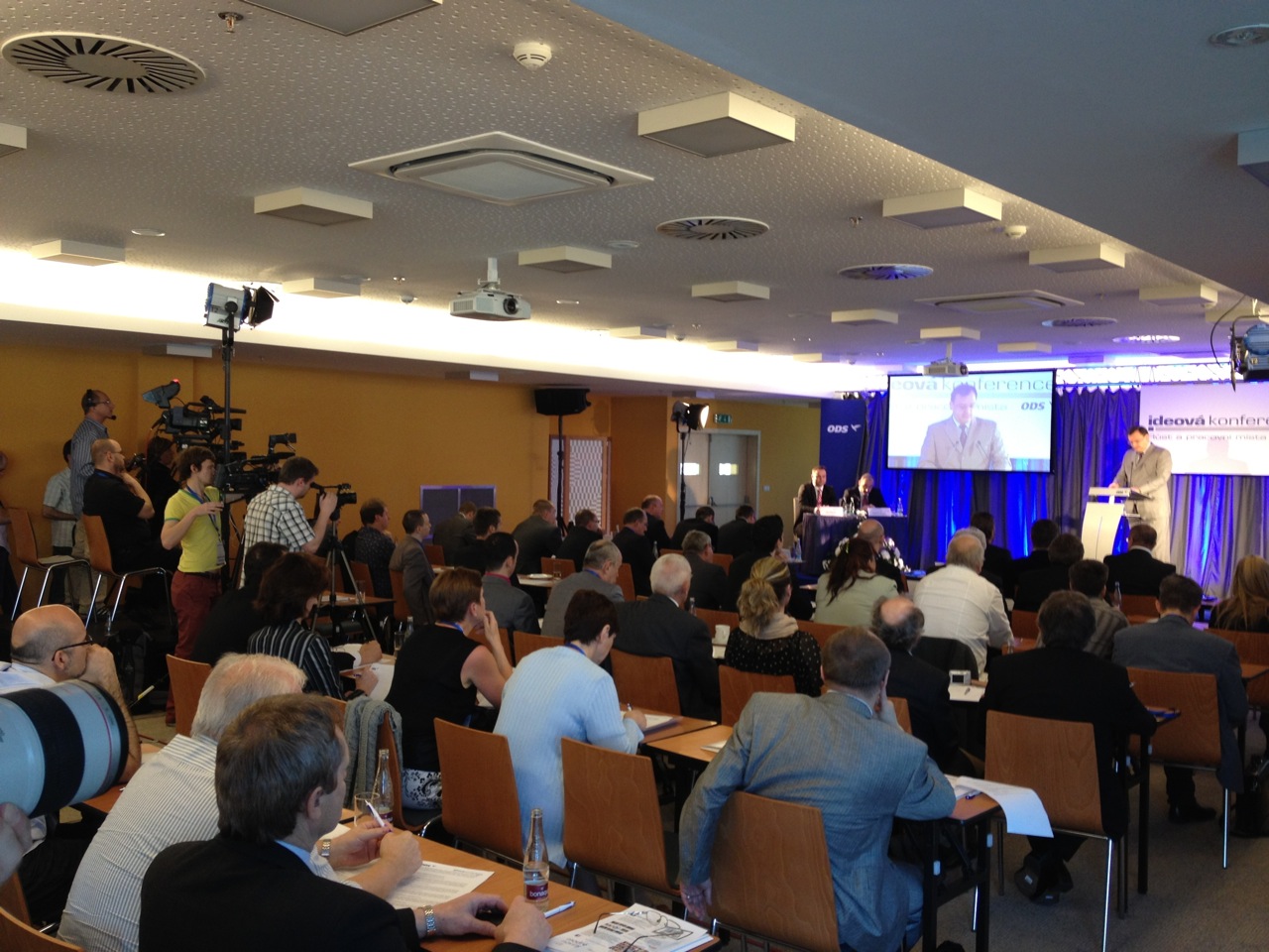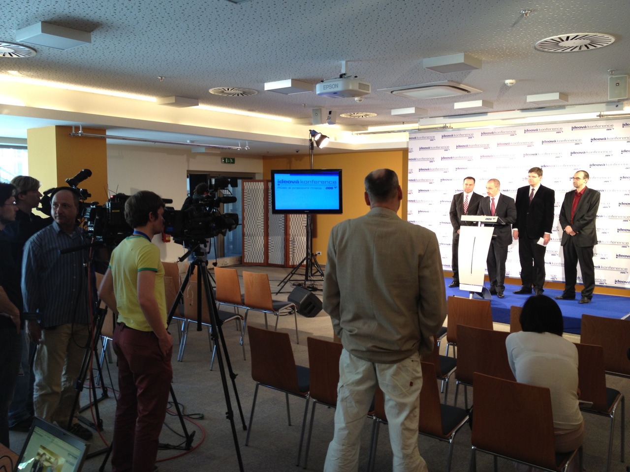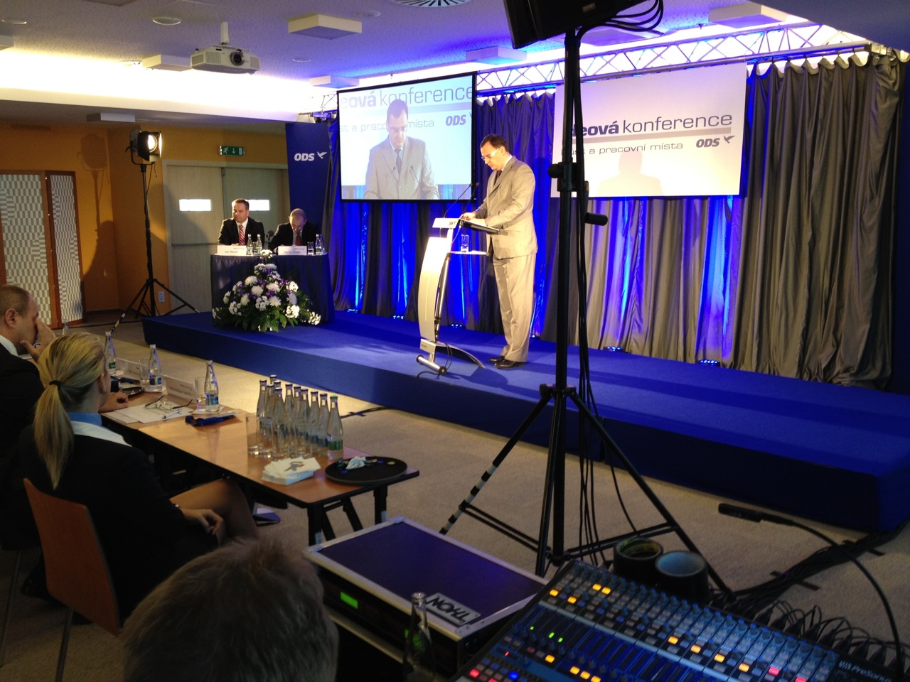 Zajišťovali jsme ozvučení, distribuci signálu pro novináře, scénické osvětlení, stavbu scény, videopřenos do internetu a videoprojekce.