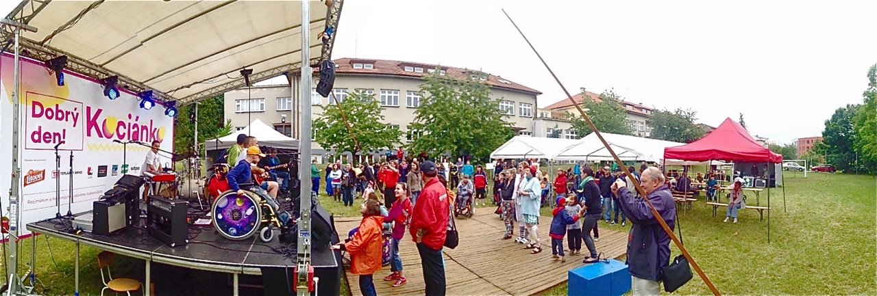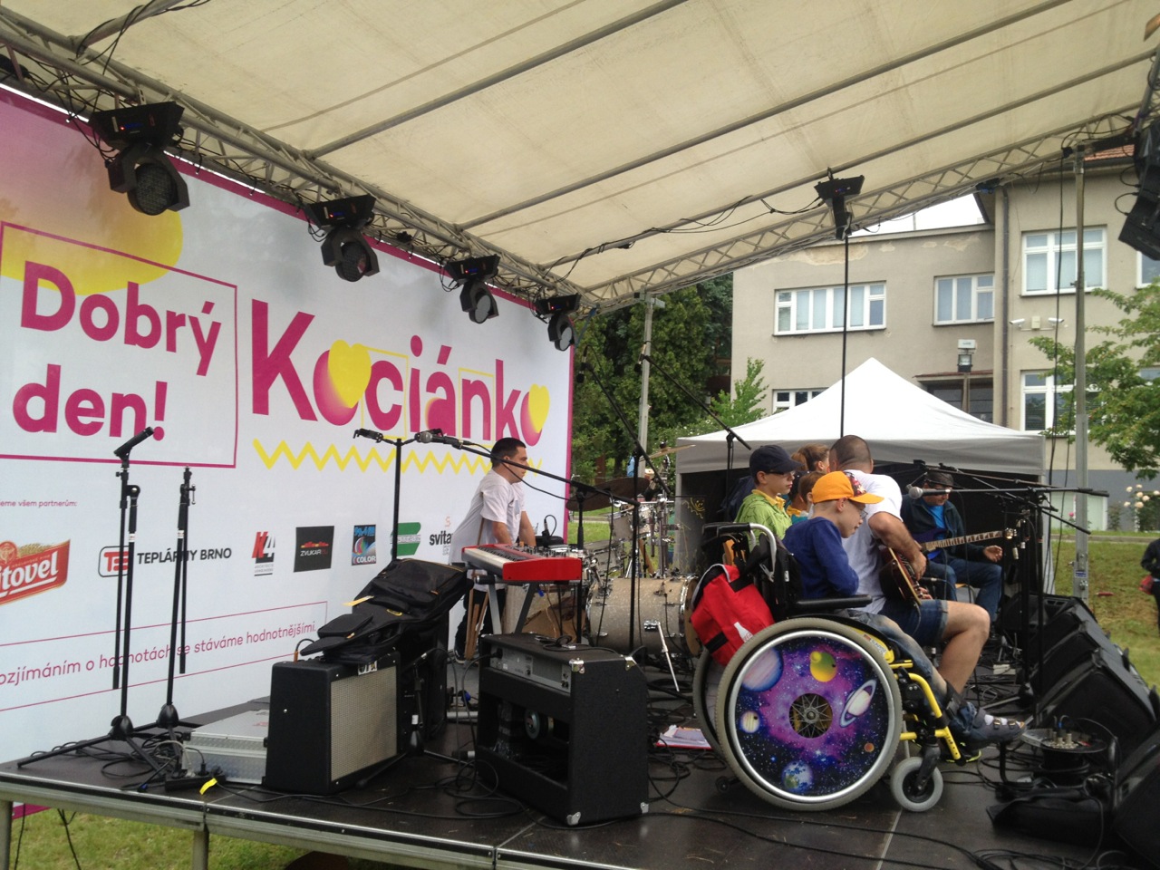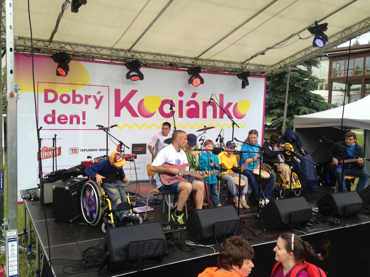 Zastřešené pódium, ozvučení a osvětlení festivalu v Brně – Králově Poli.