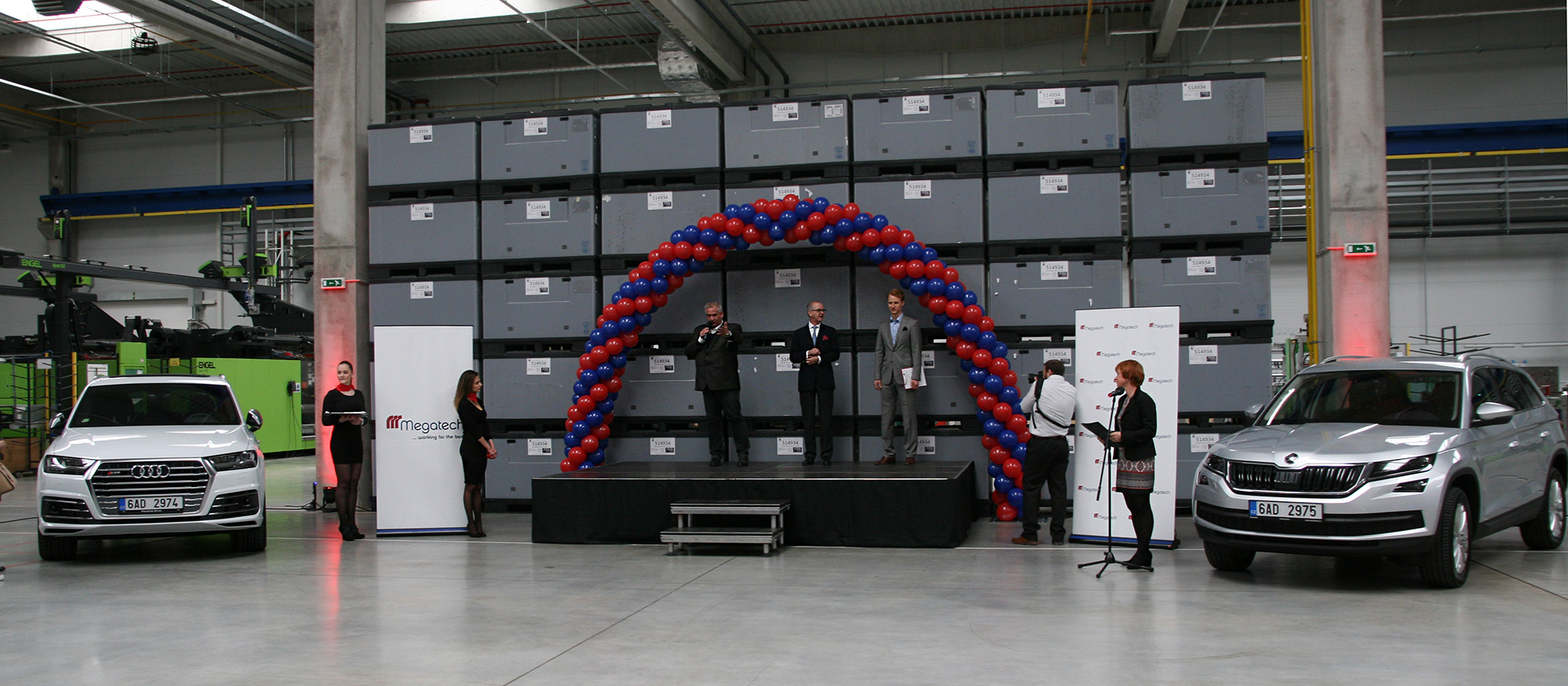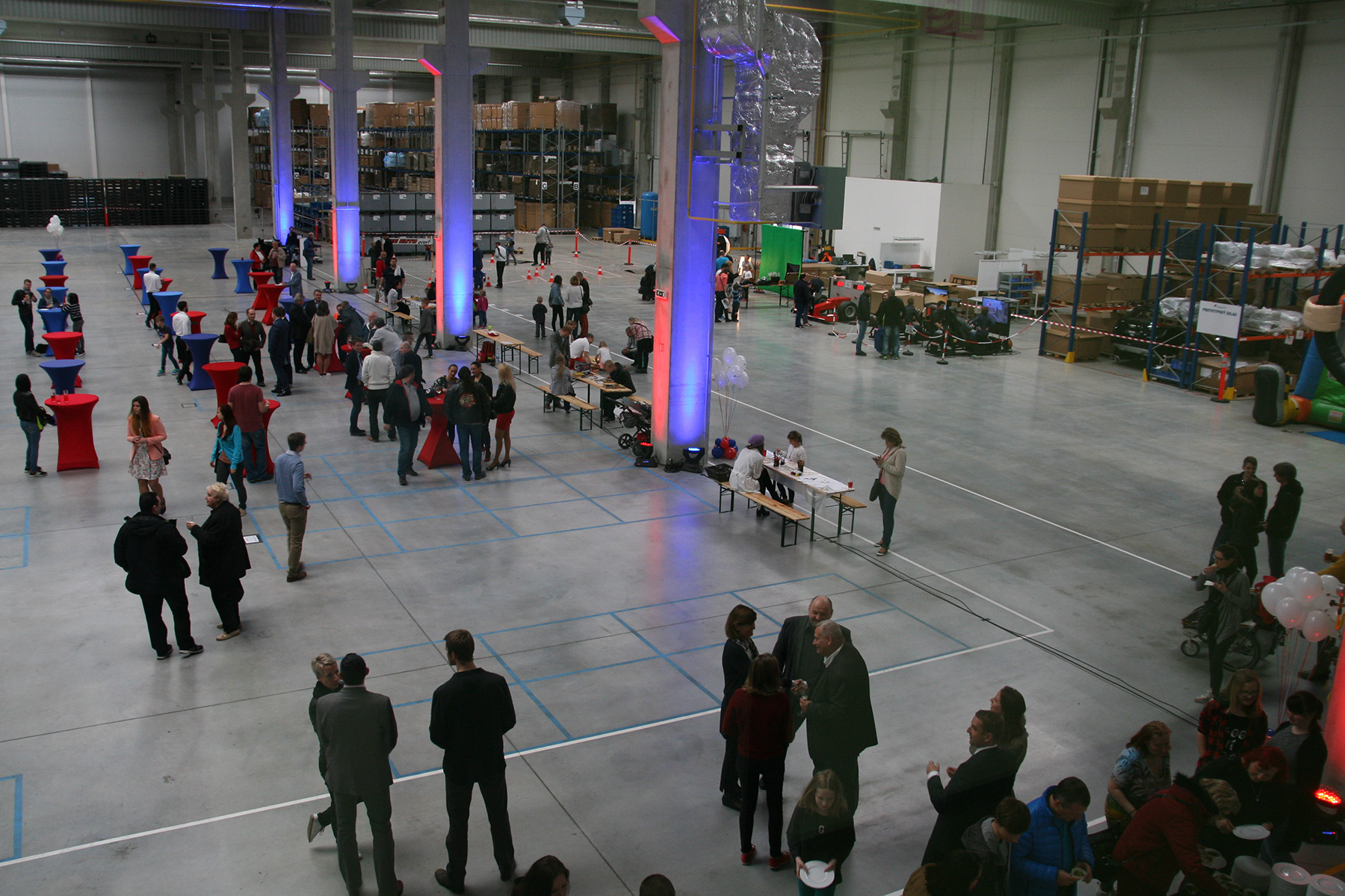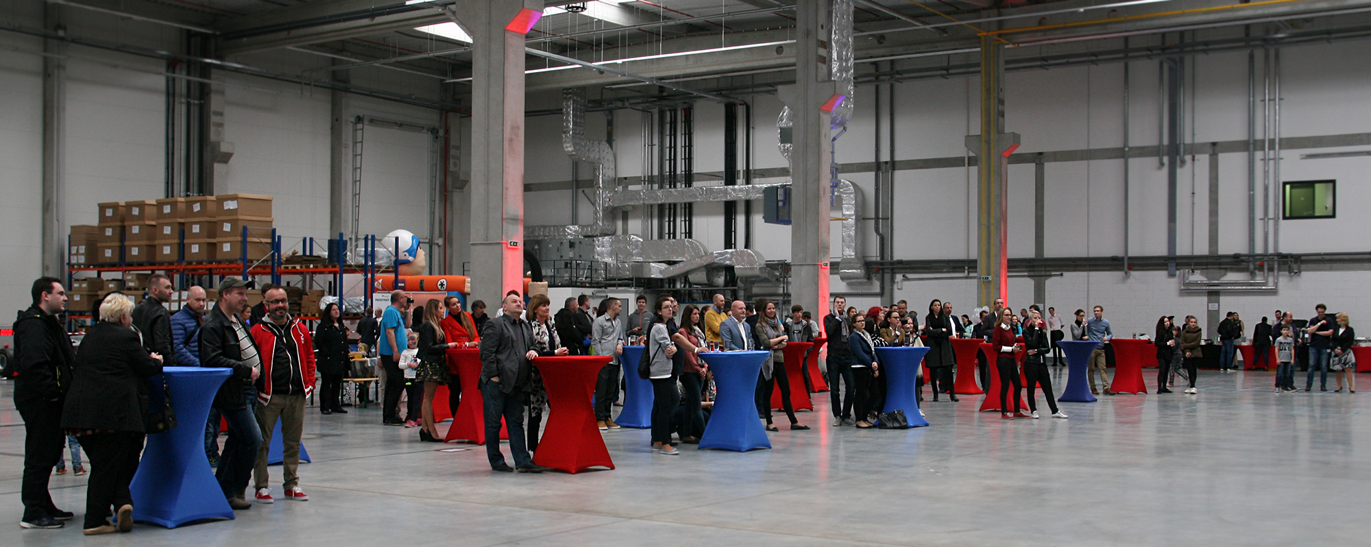 Slavnostní otevření nových výrobních prostor v Brně - Modřicích. Zajišťovali jsme pódium, ozvučení a dekorativní osvětlení haly.