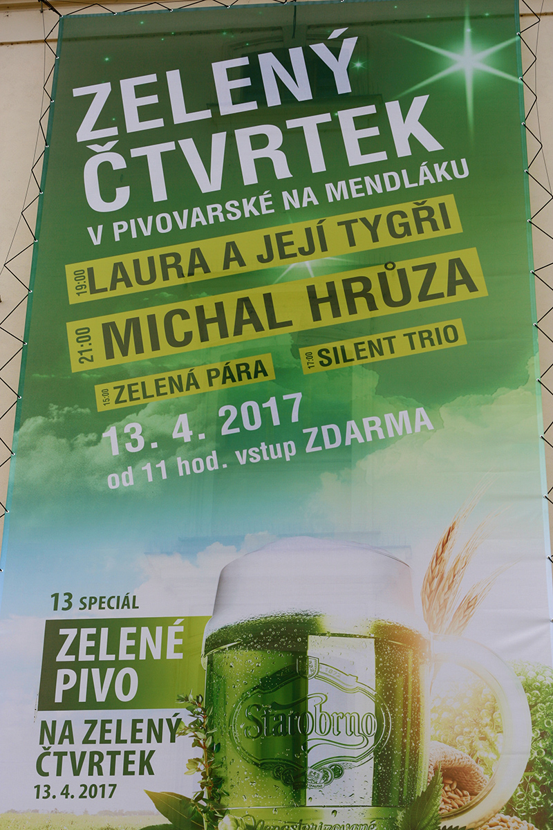 Kompletní technické zabezpečení dvanáctého ročníku festivalu, konaného tradičně na Zelený čtvrtek, v prostorách Pivovarské restaurace, na Mendlově náměstí v Brně. Vystoupili: Zelená pára, Silent Trio (SK), Laura a její tygři, Michal Hrůza. Moderátor akce: Luděk Savana Urbánek.